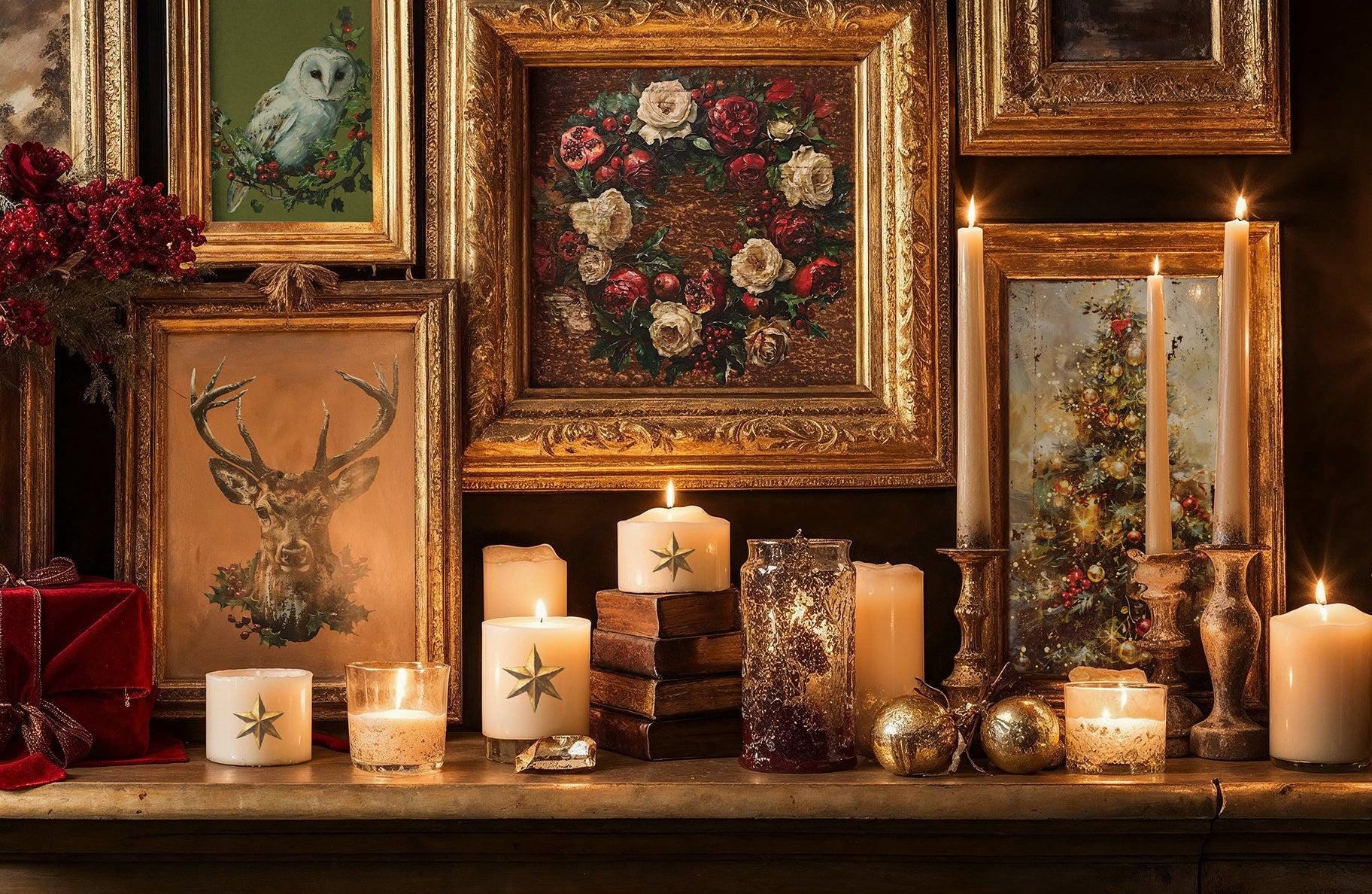 Frame several elements separately in gold for a bougie Christmas wall gallery.